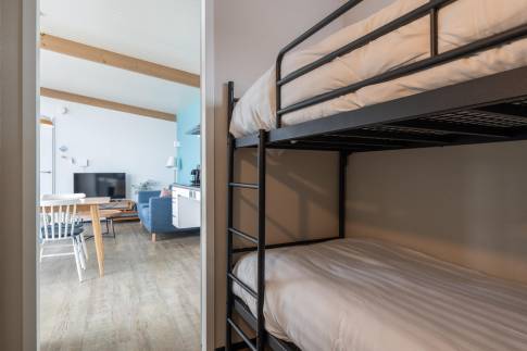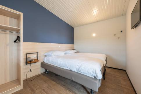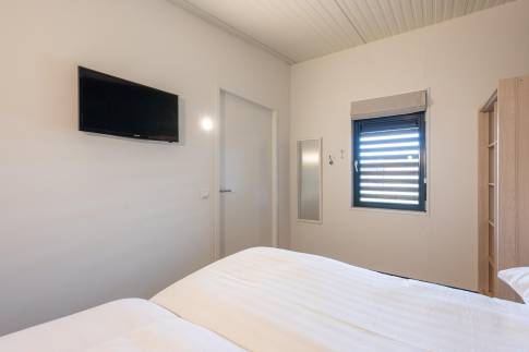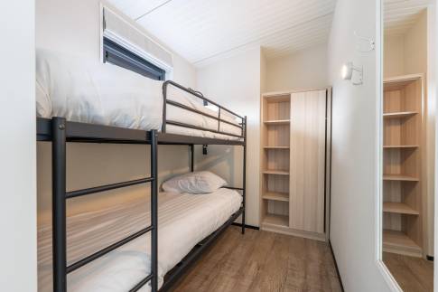 De lodge beschikt over twee slaapkamers. De aangepaste hoofdslaapkamer is voorzien van twee eenpersoonsbedden, waarvan één in hoogte verstelbaar (laagste stand ca. 70 cm) en het andere met verstelbaar ruggedeelte. De tweede slaapkamer is ingericht met een stapelbed.