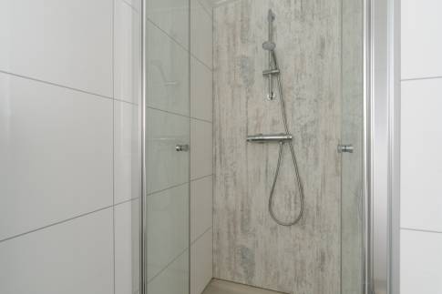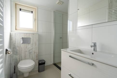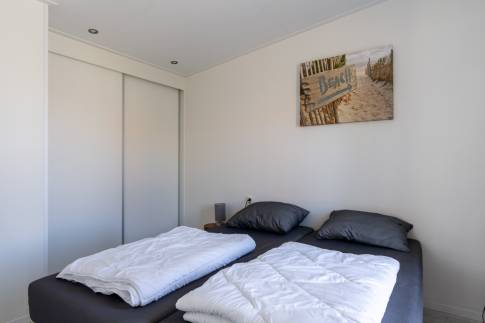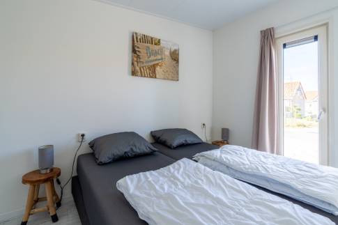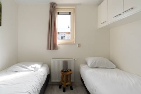 Daarnaast zijn er 2 slaapkamers met elk 2 eenpersoons boxspringbedden en is er een badkamer met douche en toilet.