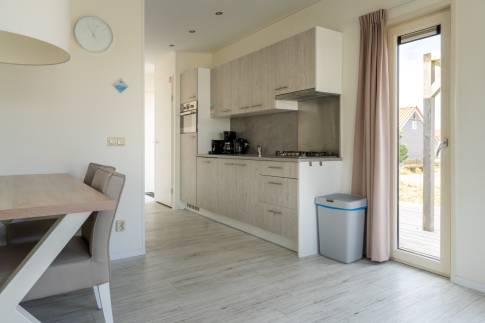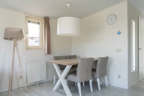 De woonkamer is voorzien van een aparte eethoek en in de keuken vind je onder andere een combimagnetron, vaatwasser en koffiezetapparaat.