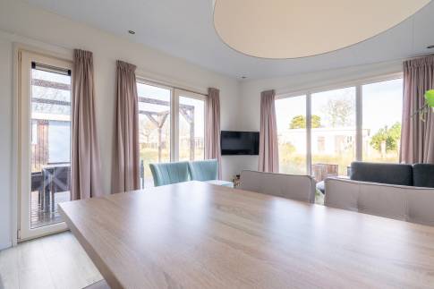 Buiten vind je een ruime tuin met terras en tuinmeubilair, perfect om te genieten van de rust en de natuurrijke omgeving. Het chalet staat op 304 m² eigen grond en beschikt over een privéparkeerplaats direct naast de woning.