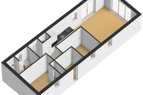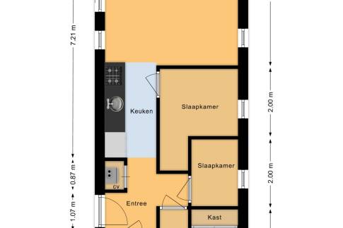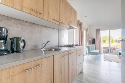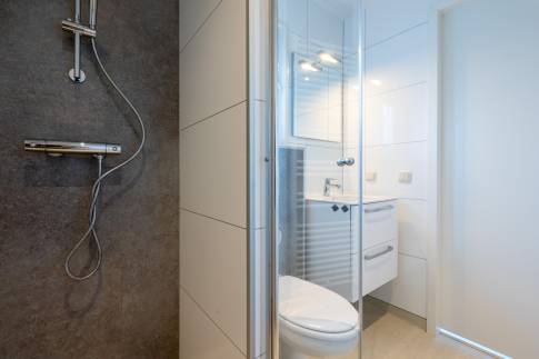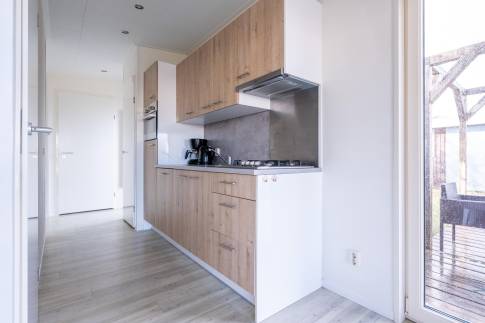 De moderne keuken is voorzien van alle gemakken, waaronder een koel-vriescombinatie, vaatwasser en combimagnetron, ideaal voor zorgeloos zelf koken. De badkamer is praktisch ingedeeld en uitgerust met een douche en toilet.