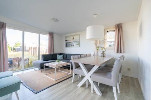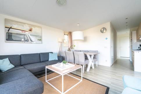 Dit charmante, gelijkvloerse chalet biedt alles voor een comfortabel verblijf aan de kust en is volledig ingericht voor 6 personen. De woning beschikt over een lichte woonkamer en 3 slaapkamers: