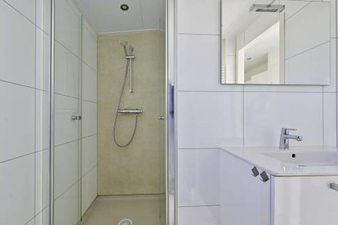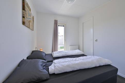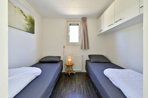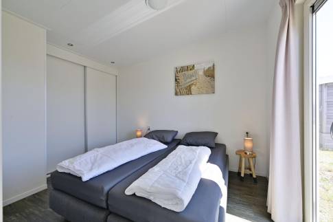 Het chalet beschikt over twee comfortabele slaapkamers, beide ingericht met twee eenpersoons boxspringbedden. De moderne badkamer is voorzien van een douche en toilet.
