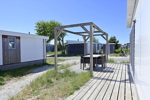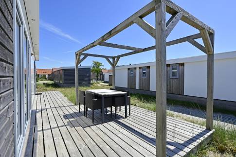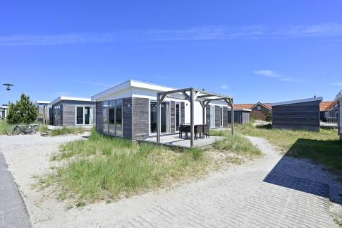 Op een ruim perceel van 237 m² eigen grond ligt dit sfeervolle, vrijstaande 4-persoons strandchalet met eigen parkeerplaats. Hier combineer je het comfort van een moderne vakantiewoning met de rust en ruimte van een aantrekkelijke ligging.