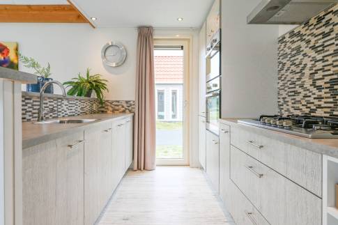 De keuken is voorzien van alle gemakken, zoals een koel-vriescombinatie, een filter koffiezetapparaat, een vaatwasser en een combimagnetron. Er zijn 2 badkamers met douche en een apart toilet. Ten slotte heeft de lodge een tuin met meubilair.