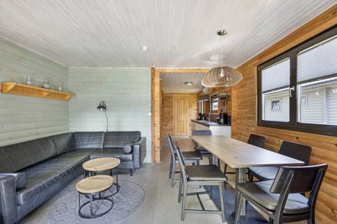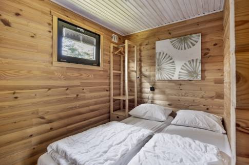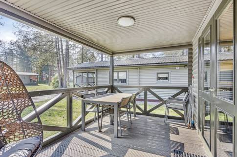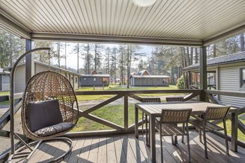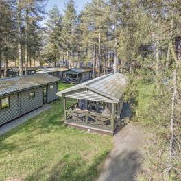 Op dit recreatiepark bieden wij het vrijstaande houten chalet nr. 427 van het type 4-6B1 aan, een mooi chalet geschikt voor maximaal 4 volwassenen en 2 kinderen personen. Het chalet heeft een gezellige woonkamer met open keuken voorzien van verschillende inbouwapparatuur zoals een koelkast, vaatwasser en elektrische kookplaat (4 pits). Er zijn 3 slaapkamers aanwezig. De eerste slaapkamer heeft een 2-persoons bed. De tweede slaapkamer heeft twee 1-persoons bedden en de derde slaapkamer is voorzien van een stapelbed. De praktische badkamer is voorzien van een douche, wastafelmeubel en een toilet. Middels de gemeubileerde veranda met hangstoel is het aangenaam vertoeven bij de zomerdag. Hier kan men heerlijk genieten van de rust op het recreatiepark.