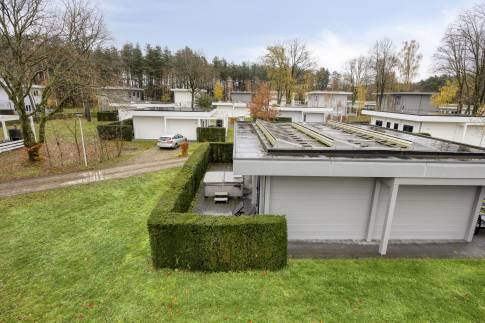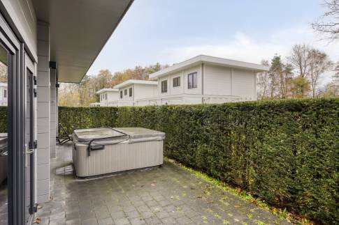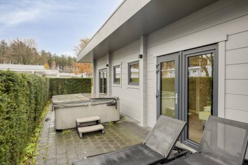 De woning heeft aan de voor en achterzijde een terras. Het terras aan de voorzijde is overdekt en voorzien van terrasmeubilair en een terrashaard aanwezig. Het terras aan de achterzijde beschikt over verstelbare ligstoelen en een luxe bubbelbad (jacuzzi), deze is het gehele jaar te gebruiken. De woning heeft een rustige ligging op het park.
