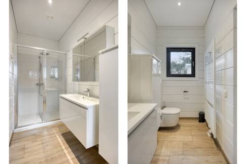 Er zijn 2 slaapkamers aanwezig. Beide slaapkamers hebben een badkamer en-suite met een regendouche, wastafelmeubel en toilet.