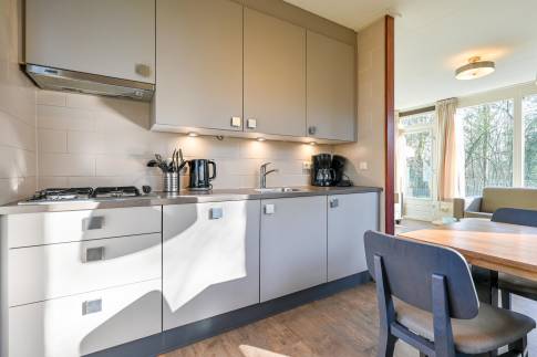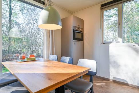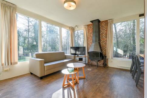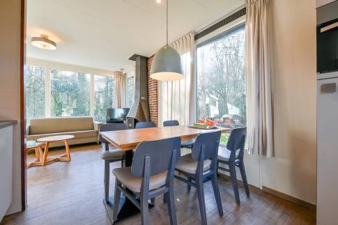 Deze sfeervolle, vrijstaande woning (type 6CD) ligt aan de rand van het park en biedt ruimte aan maximaal 6 personen. Dankzij de grote raampartijen is de woning heerlijk licht, de indeling zorgt voor een knusse, gezellige sfeer.