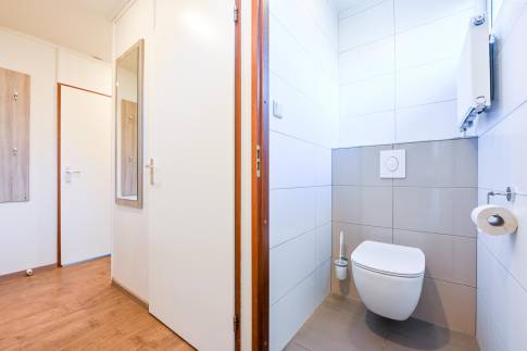 De woning beschikt over drie comfortabele slaapkamers, elk met twee luxe 1-persoons boxspringbedden. Één slaapkamer is extra comfortabel en voorzien van een softtopper en een wastafel. De moderne badkamer, gerenoveerd in oktober 2023, is uitgerust met een douche en een stijlvol wastafelmeubel. Het toilet is apart voor extra gemak.