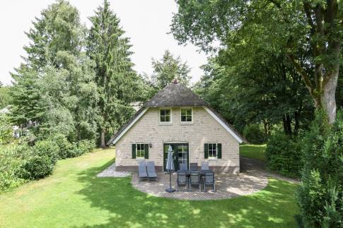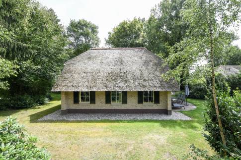 Deze charmante hoevewoning (type 6DL) is gelegen op een royaal perceel van 930 m² eigen grond aan de rustige rand van het park. Het rieten dak draagt bij aan de authentieke uitstraling van de woning.