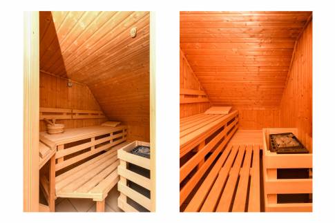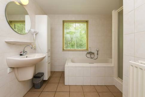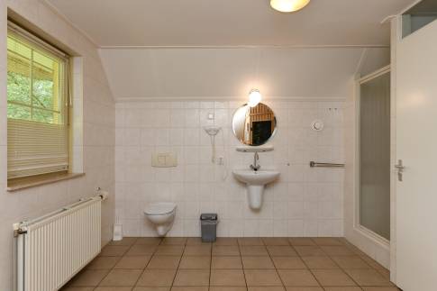 De woning beschikt over drie slaapkamers. Op de begane grond bevindt zich een slaapkamer met een eigen badkamer, uitgerust met een bubbelbad, aparte douche en wastafel. De twee overige slaapkamers liggen op de verdieping, samen met een tweede badkamer met wastafel, toilet en een privé sauna. Daarnaast is er een praktische inpandige berging op de begane grond. Tevens is er een wasmachine/droger aanwezig in de woning.
