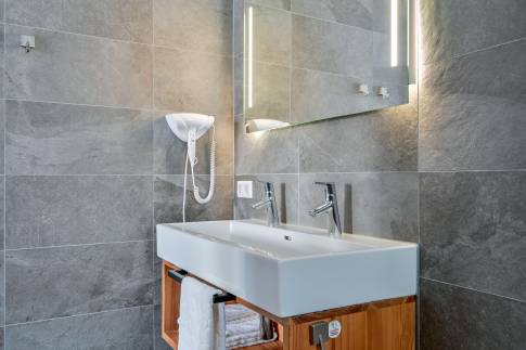 Op de verdieping bevinden zich vier ruime slaapkamers en drie badkamers, waarvan één met een sauna. Twee badkamers en suite zijn voorzien van een inloopdouche met rainshower en een dubbele wastafel. De derde badkamer beschikt over een ligbad, een inloopdouche met rainshower en een wastafel. Op de verdieping zijn tevens twee separate toiletten aanwezig.