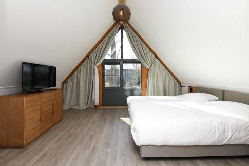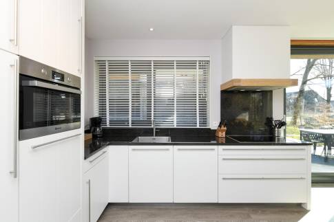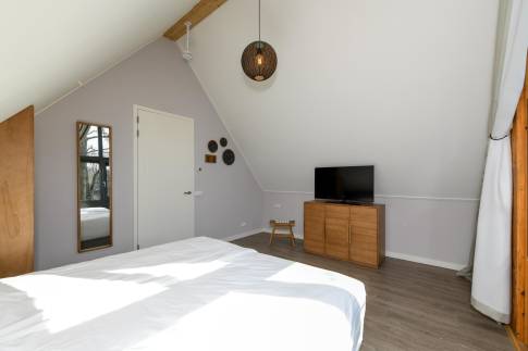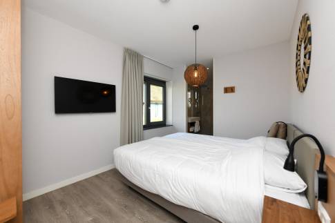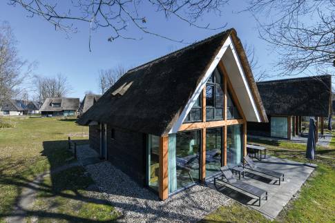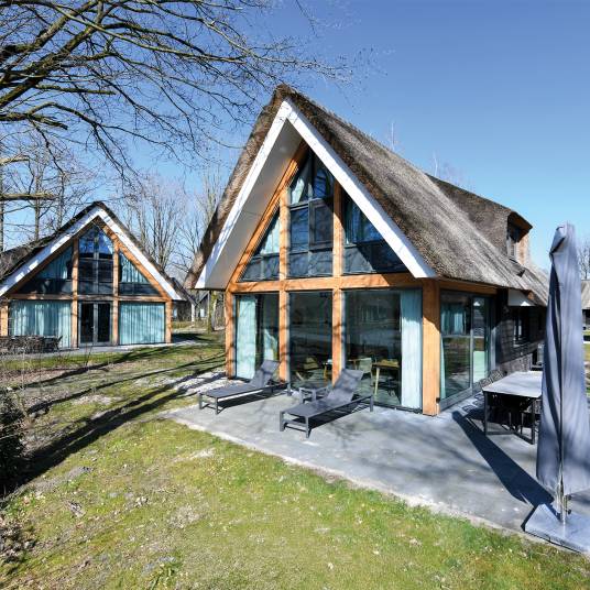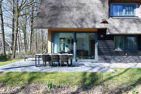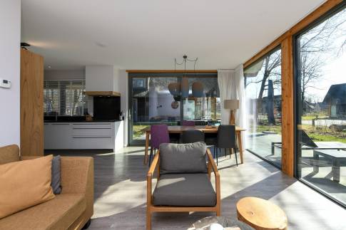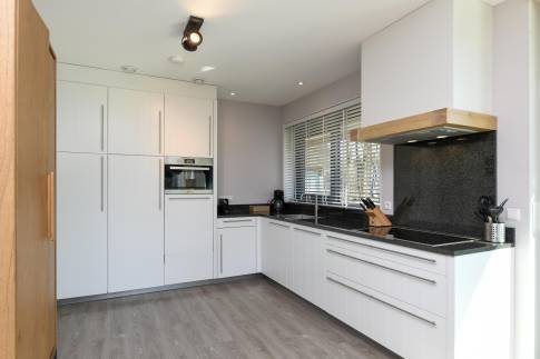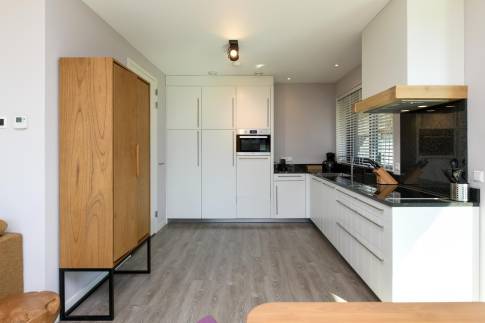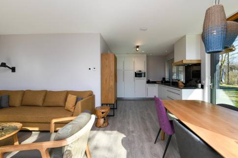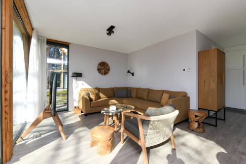 Deze vrijstaande villa (type 6EL) ligt op een rustige plek aan de rand van het park. Dankzij de ligging geniet u volop van privacy en de groene omgeving. De woonkamer is licht en modern ingericht en beschikt over een gezellige zit- en eethoek, inclusief smart-tv. Via de schuifpui loopt u zo het terras op, waar een comfortabele tuinset voor u klaarstaat. De open keuken is van alle gemakken voorzien en uitgerust met diverse inbouwapparatuur, waaronder een combimagnetron, vaatwasser, koelkast met vriesvak en een Nespresso-koffiemachine.