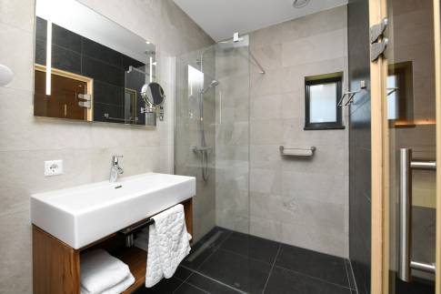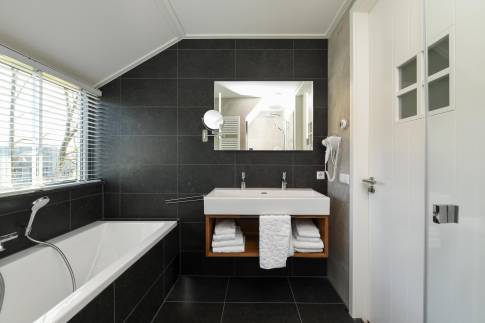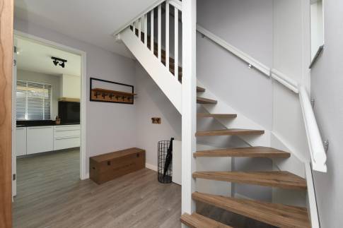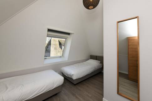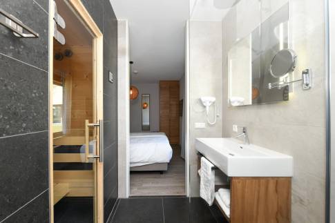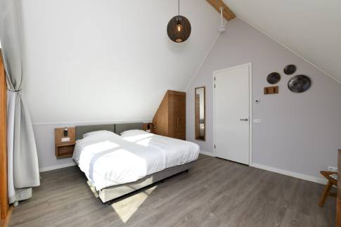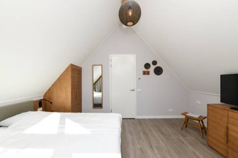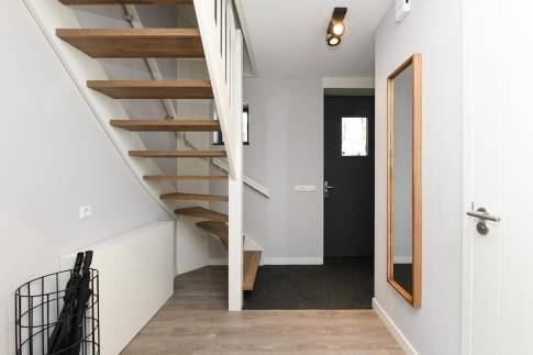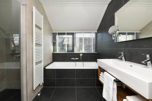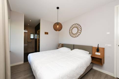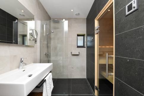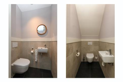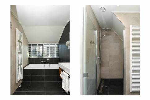 In totaal zijn er drie slaapkamers, waarvan één op de begane grond. De andere twee bevinden zich op de eerste verdieping. De badkamer op de begane grond beschikt over een inloopdouche, wastafel én een sauna, perfect voor een moment van ontspanning. Het toilet is apart van de badkamer geplaatst, wat extra praktisch is. De badkamer op de eerste verdieping is voorzien van een inloopdouche met rainshower, ligbad en dubbele wastafel. Ook hier is een separaat toilet aanwezig. Op de eerste verdieping is daarnaast een wasmachine- en droger te vinden.