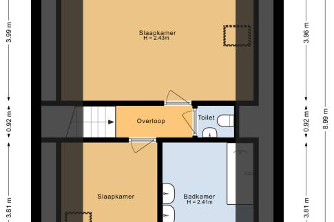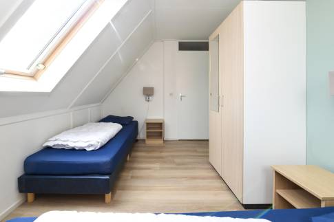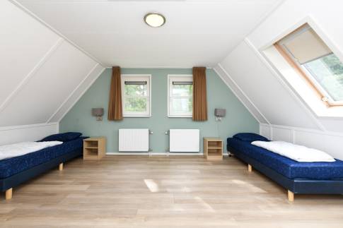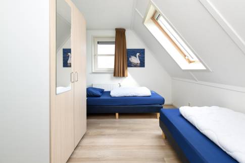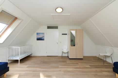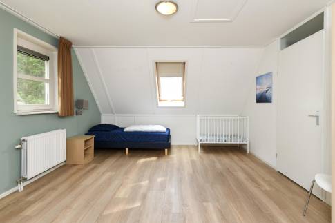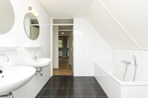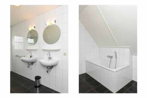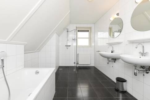 De eerste verdieping telt nog twee ruime slaapkamers, beide ingericht met twee losse bedden. Op deze verdieping vind je ook de tweede badkamer, uitgerust met een ligbad, een aparte douche en een dubbele wastafel. Ook hier is een apart toilet aanwezig. Tot slot beschikt de woning over een praktische berging, ideaal voor fietsen, tuinmeubilair of andere spullen die je netjes wilt opbergen.