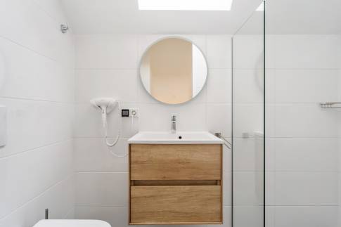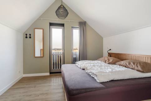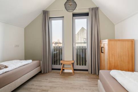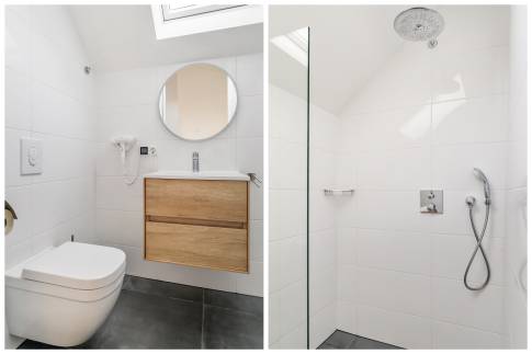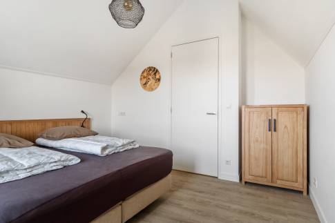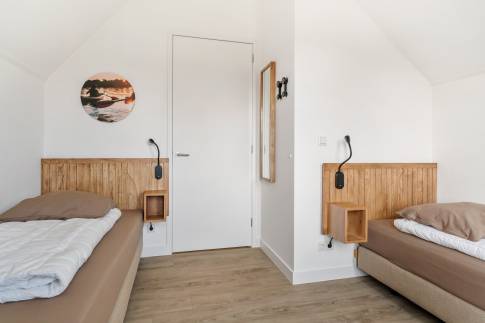 Op de verdieping vind je een tweede badkamer met douche, dubbele wastafel en toilet, plus twee slaapkamers met elk boxspringbedden.