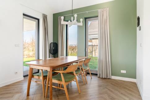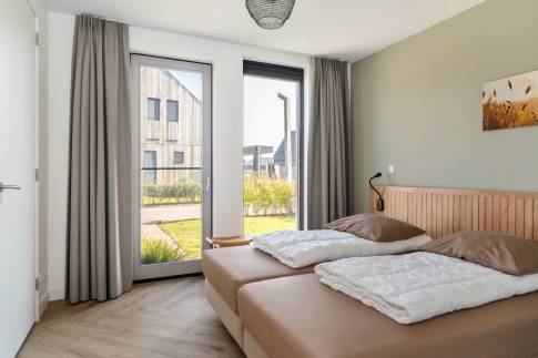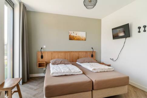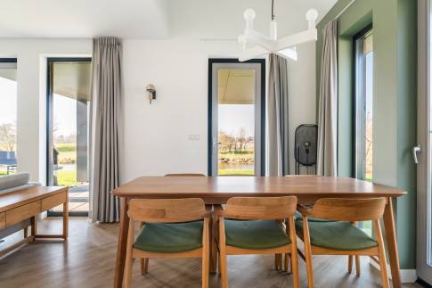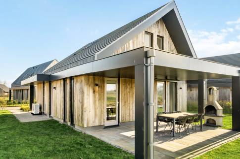 Deze recent gebouwde en uitstekend geïsoleerde houtskeletwoning op Landal Elfstedenhart is gasloos en voorzien van een duurzame lucht/water warmtepomp. De gevels zijn bekleed met verduurzaamd hout en het dak met betonnen pannen. Het interieur straalt modern comfort uit, met een inrichting die perfect aansluit bij de natuurlijke omgeving.