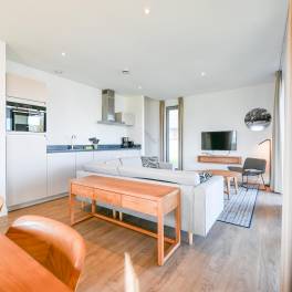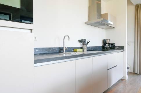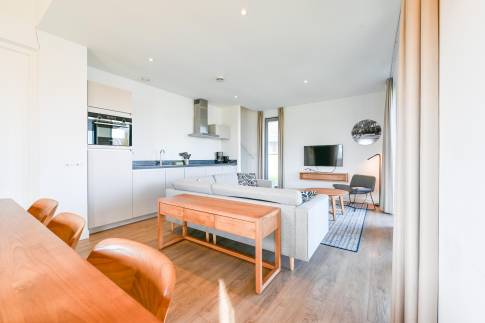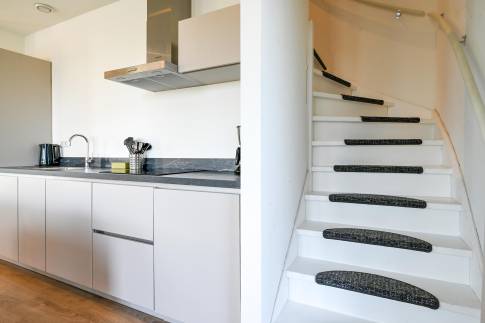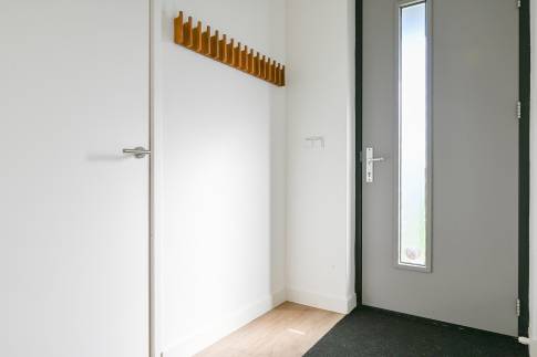 Binnen straalt de woning warmte en gezelligheid uit. De natuurlijke tinten in de knusse zithoek zorgen ervoor dat de sfeer van buiten naadloos naar binnen wordt doorgetrokken. De echte blikvanger van de woning is de riante open keuken, uitgevoerd in een neutrale en rustige stijl, en voorzien van hoogwaardige inbouwapparatuur, zoals een vaatwasser, combimagnetron en inductiekookplaat.