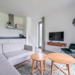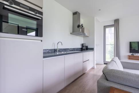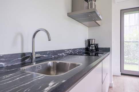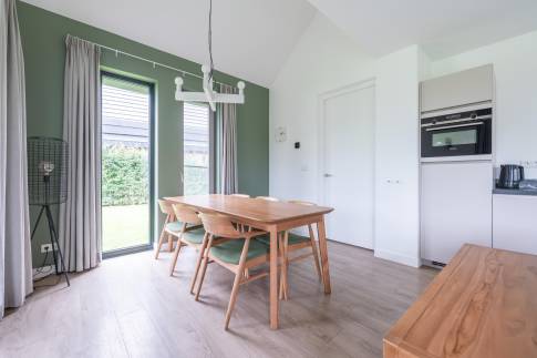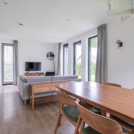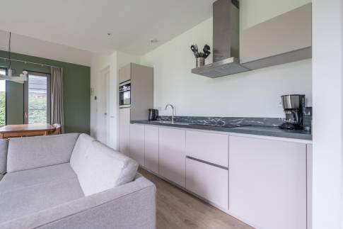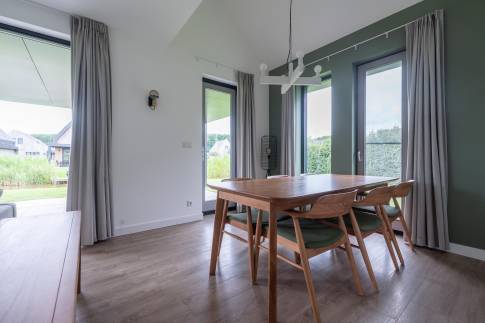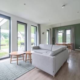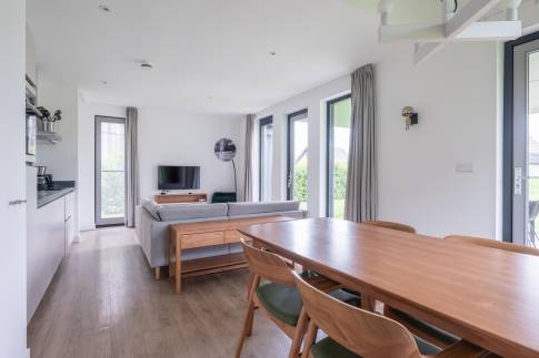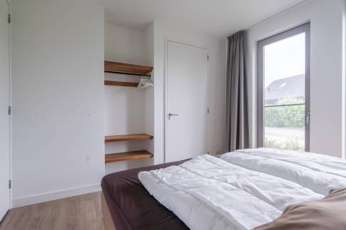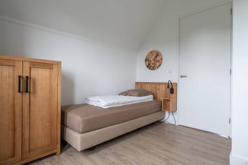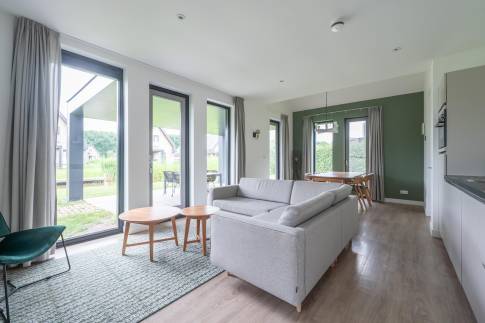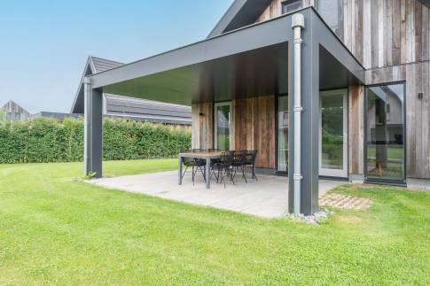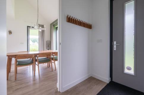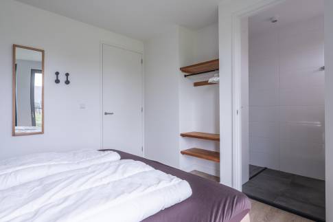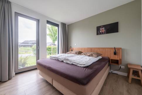 Gelegen aan het water en omringd door natuur, biedt deze moderne 6-persoonswoning uit 2022 een heerlijke plek om te ontspannen. De begane grond heeft een lichte woonkamer met uitzicht op het water en toegang tot het overdekte terras. Aangrenzend ligt de open keuken, voorzien van inbouwapparatuur zoals een vaatwasser, combimagnetron, inductiekookplaat en koelkast met vriesvak. Op deze verdieping bevindt zich ook een slaapkamer met boxspringbedden en tv, een badkamer met douche en sauna, een apart toilet en een inpandige berging.