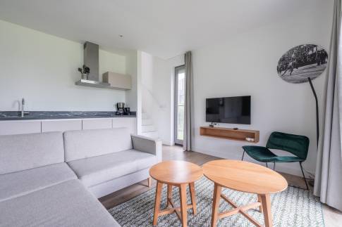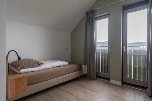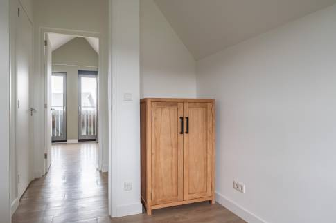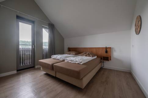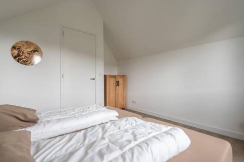 Op de eerste verdieping zijn twee slaapkamers met comfortabele boxspringbedden, evenals een tweede badkamer met douche, dubbele wastafel en toilet.