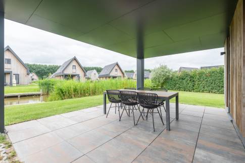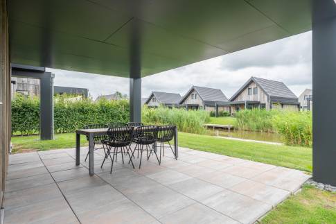 Buiten is er een ruim overdekt terras met vrij uitzicht over het water. De woning beschikt over een eigen steiger met directe toegang tot het open vaarwater, wat de locatie ook ideaal maakt voor watersportliefhebbers.