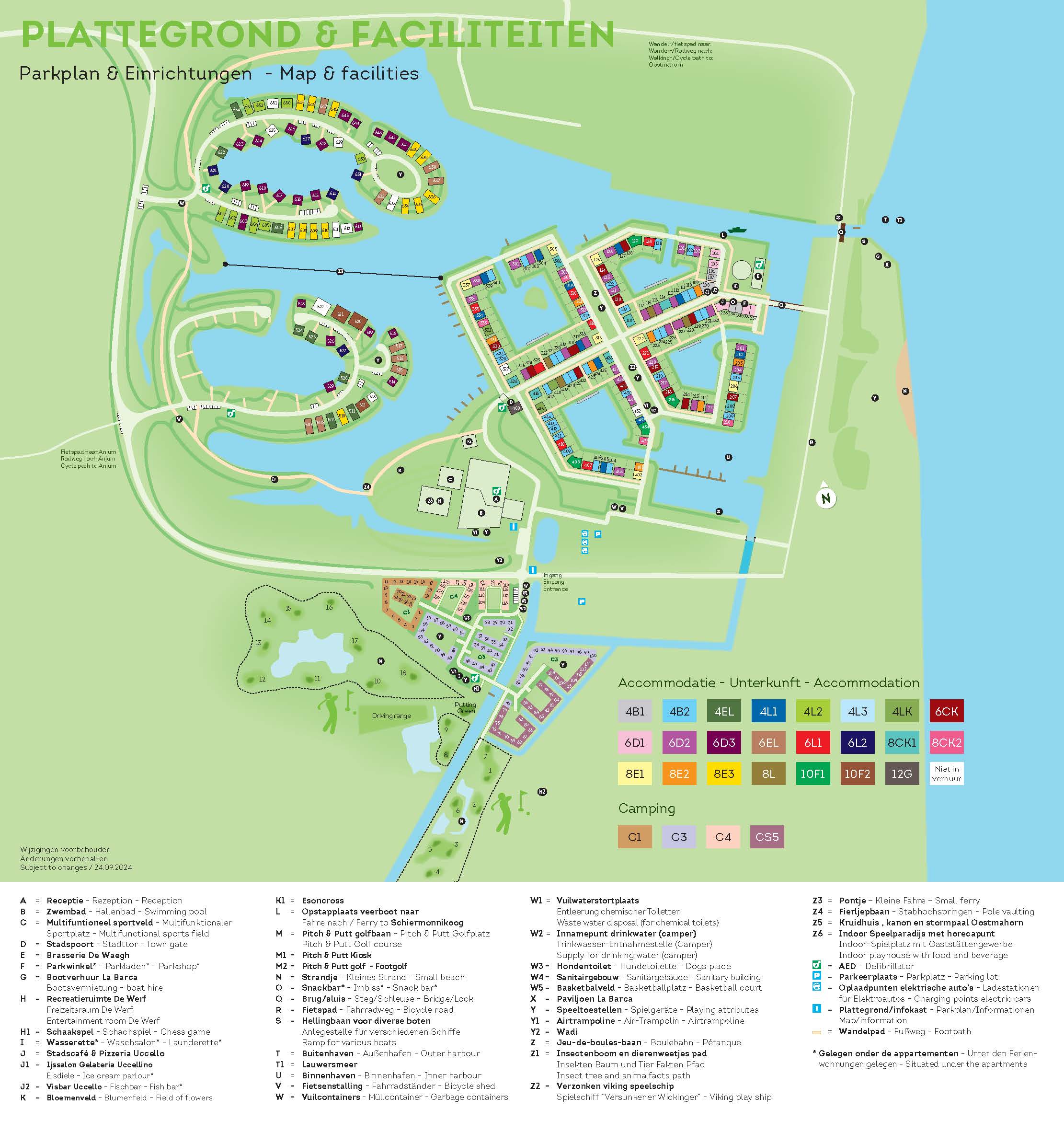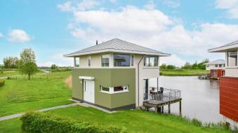 Deze 6-persoons extra luxe panoramawoning (type 6EL) is gelegen op een terp en beschikt over een aanlegsteiger. Door de ruime balkons en grote ramen heeft de woning een prachtig vrij en weids uitzicht over het water. De woonkamer is opgezet in een U-vorm, wat inhoudt dat de zit- en eethoek worden verbonden door de open keuken. De keuken is voorzien van diverse inbouwapparatuur, waaronder een vaatwasser, combimagnetron en Nespresso koffiemachine. Verder bevindt zich op de begane grond een separaat toilet. Via de trap in de hal bereikt u de eerste verdieping, voorzien van drie 2-persoons slaapkamers. Op de verdieping bevinden zich twee badkamers. Eén daarvan is voorzien van bubbelbad, regendouche met sunshower, toilet en wastafel. De andere beschikt over een douche met stortemmer en wastafel. De woning beschikt daarnaast over een Finse sauna en wasmachine en droger.