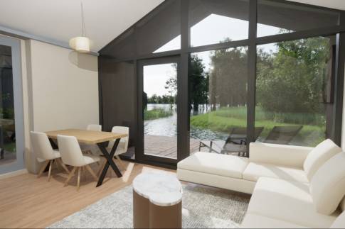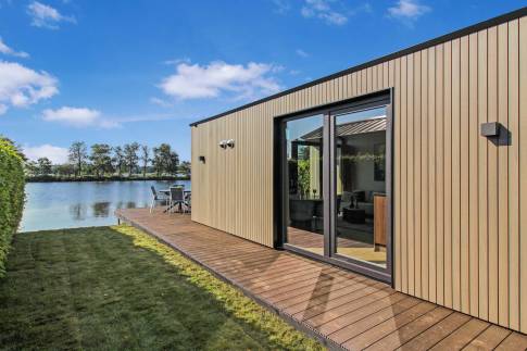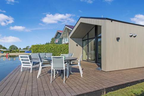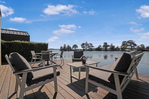 Het ultieme hoogtepunt van de waterlodge: het ruime vlonderterras dat zich uitstrekt aan de voorzijde en de zijkant van de woning. Hier is het genieten van een ochtendkoffie, een goed boek of samen dineren terwijl je geniet van de rustgevende geluiden van de natuur. Het terras biedt een prachtige plek om te ontspannen en te genieten van de heerlijke buitenlucht.