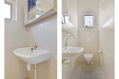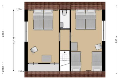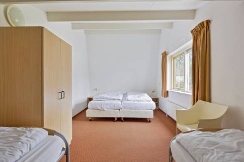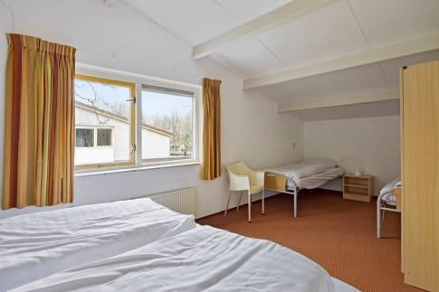 Beneden is er 1 slaapkamer met 2 eenpersoonsbedden en een badkamer met wastafel en douche. Op de eerste verdieping vind je nog 2 slaapkamers, waarvan één met 2 eenpersoonsbedden en één met 3 eenpersoonsbedden. Er zijn 2 aparte toilets.
