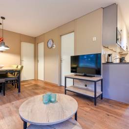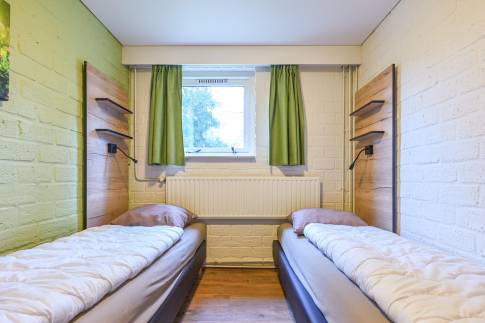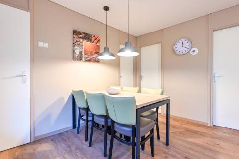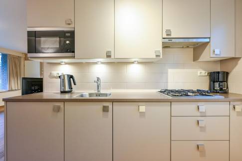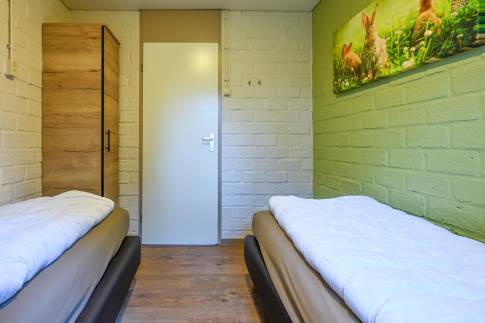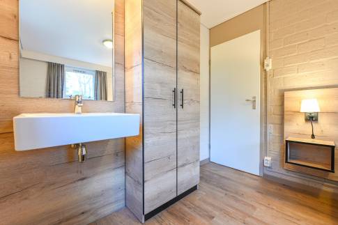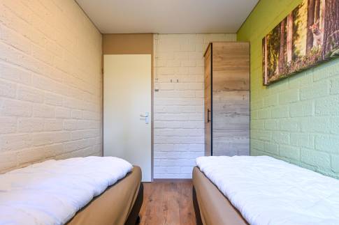 Deze vrijstaande 6-persoons recreatiewoning (type 6B) is vlakbij de centrale voorzieningen. De woning heeft een gezellige woonkamer met een deur naar het gemeubileerde terras. De open keuken is van alle gemakken voorzien zoals o.a. een magnetron, vaatwasser en Senseo koffiezetapparaat. De woning telt drie slaapkamers, waarvan één slaapkamer is voorzien van twee 1-persoons boxsprings met een 2-persoonssofttoper en een wastafel. De andere twee slaapkamers zijn elk voorzien van twee 1-persoons boxsprings. De badkamer is voorzien van een douche en wastafel. In de hal is een apart toilet te vinden. De woning heeft een rustige ligging op het recreatiepark.