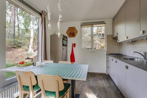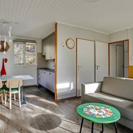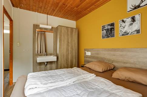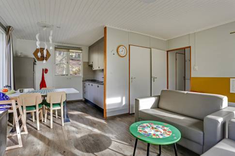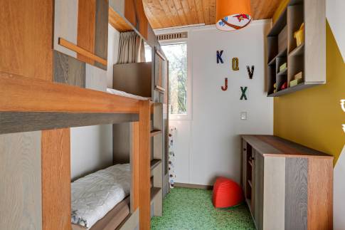Recreatiewoning 258 (type 4CK) is een vrijstaande woning en omringd door prachtige natuur, hierdoor is er voldoende privacy. Deze kindvriendelijke woning beschikt over allerlei voorzieningen voor u en uw kinderen. In de gezellige woonkamer met ruime zithoek is dit extra goed zichtbaar, want wanneer u naar buiten kijkt ziet u alleen maar groen. Via de deur is het gemeubileerde terras bereikbaar. De open keuken met eethoek is uitgerust met verschillende (inbouw)apparatuur zoals een vaatwasser, combimagnetron, koelkast met vriesvak, Senseo- en filterkoffiezetapparaat en een 4-pits gaskookplaat. Er zijn drie slaapkamers aanwezig waarvan één is uitgerust met twee 1-persoons boxsprings met softtopper. De andere slaapkamer heeft een stapelbed en de derde slaapkamer heeft een ledikant en een commode. In de badkamer vindt u een douche, ligbad en wastafel. In de hal is een separaat toilet aanwezig. Ook is er nog een inpandige berging aanwezig.