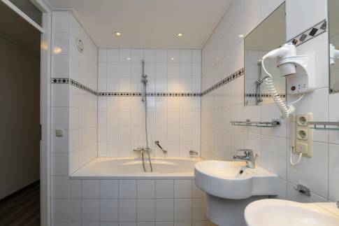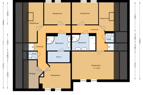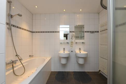 De woning telt vier slaapkamers. Op de begane grond vindt u één slaapkamer met directe toegang tot een badkamer met douche en toilet. De overige drie slaapkamers bevinden zich op de eerste verdieping. Hier is ook de tweede badkamer te vinden, ingericht met een douchecabine, dubbele wastafel en een ligbad. Tot slot is er op beide verdiepingen een separaat toilet.