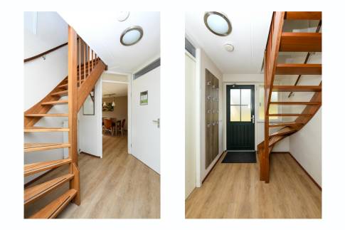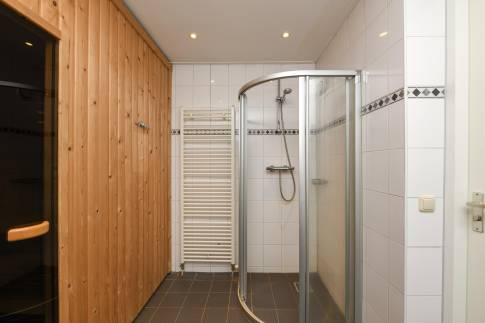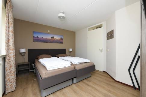 Woning 323: is een ruime en sfeervolle 8-persoonswoning, type 8LT1. De gezellige woonkamer is ingericht met een comfortabele zit- en eethoek en beschikt over een flatscreen-tv. Dankzij de openslaande deuren stapt u zo het terras op, waar u heerlijk kunt ontspannen op het verstelbare terrasmeubilair. De open keuken is van alle gemakken voorzien en uitgerust met moderne inbouwapparatuur, zoals een vaatwasser, combimagnetron, koelkast met vriesvak en een Nespresso koffiemachine. In totaal beschikt de woning over vier slaapkamers. Eén daarvan bevindt zich op de begane grond en heeft een eigen aangrenzende badkamer met douche en toilet. De drie overige slaapkamers liggen op de eerste verdieping, waar u ook een tweede badkamer vindt, voorzien van een douchecabine en dubbele wastafel. Voor extra comfort is er zowel op de begane grond als boven een apart toilet aanwezig. Op de eerste verdieping bevindt zich een privé sauna – perfect om in alle rust te ontspannen na een actieve dag.