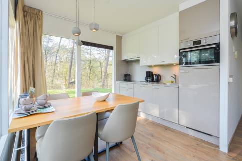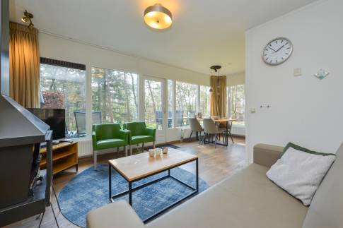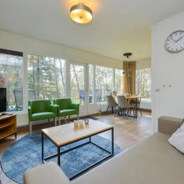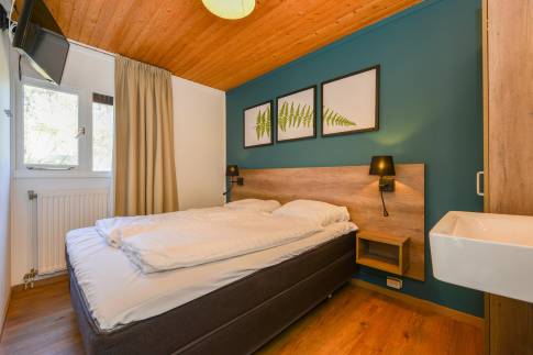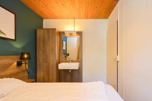 Deze geschakelde 2-persoonswoning (type 2L) is omringd door prachtige natuur, hierdoor is er voldoende privacy. In de moderne woonkamer met ruime zithoek ziet u alleen maar groen. Via de deur is het terras met deels verstelbaar meubilair bereikbaar. De open keuken met eethoek is uitgerust met verschillende (inbouw)apparatuur zoals o.a. een vaatwasser, combimagnetron en Nespresso koffiemachine. Er is één slaapkamer aanwezig welke is uitgerust met twee 1-persoons Auping boxsprings met softtopper en flatscreen-tv. In de badkamer vindt u een douche en wastafel. In de hal is een separaat toilet aanwezig. Daarnaast is er een saunakamer met met opgiet sauna-/infraroodcombinatie aanwezig.