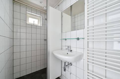 De badkamer is voorzien van een douche en wastafel. In de hal bevindt zich een separaat toilet. De recreatiewoning heeft een rustige ligging op het park.