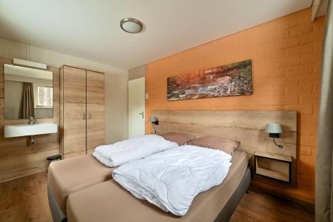 De woning beschikt over drie slaapkamers. Eén slaapkamer is ingericht met twee 1-persoons boxsprings en een 2-persoonssofttoper en heeft daarnaast een eigen wastafel. De overige twee slaapkamers zijn elk uitgerust met twee 1-persoons boxsprings.