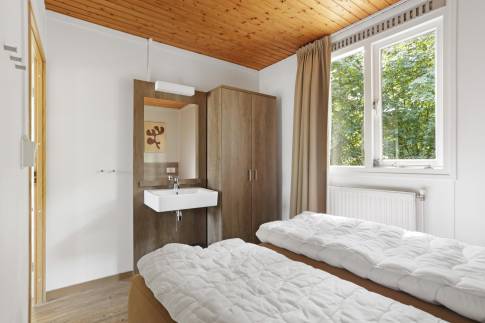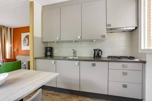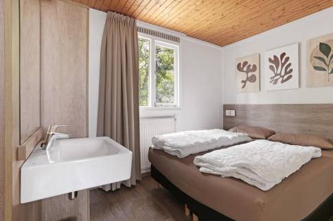 Recreatiewoning 601 (type 4C) is een geschakelde woning en omringd door prachtige natuur, hierdoor is er voldoende privacy. In de gezellige woonkamer met ruime zithoek is dit extra goed zichtbaar, want wanneer u naar buiten kijkt ziet u alleen maar groen. Via de deur is het gemeubileerde terras bereikbaar. De open keuken met eethoek, is uitgerust met verschillende (inbouw)apparatuur zoals een vaatwasser, combimagnetron, koelkast met vriesvak, Senseo- en filterkoffiezetapparaat en een 4-pits gaskookplaat. Er zijn twee slaapkamers aanwezig waarvan één is uitgerust met twee 1-persoons boxsprings met 2-persoonssofttopper en wastafel. De andere slaapkamer beschikt over twee 1-persoons boxsprings. In de badkamer vindt u een douche, ligbad en wastafel. In de hal is een separaat toilet aanwezig. Ook is er nog een inpandige berging aanwezig.