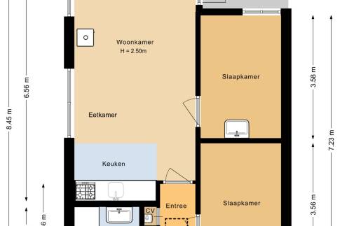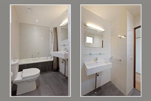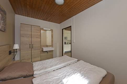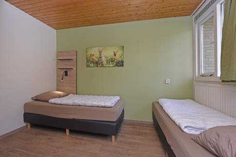 De woning beschikt over twee slaapkamers. Beide kamers zijn ingericht met twee 1-persoons boxsprings, waarvan één slaapkamer extra is voorzien van een wastafel. De badkamer is voorzien van een ligbad, wastafel en toilet.