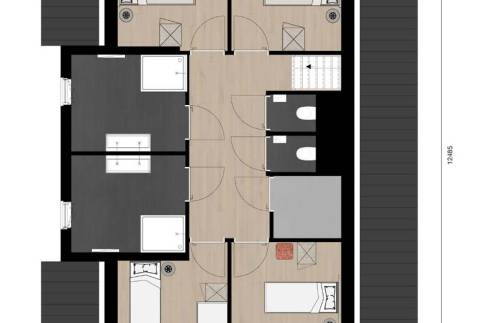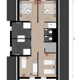 De 12-persoons Comfort woning heeft een gebruiksoppervlakte van circa 173 m², wat zorgt voor meer dan voldoende ruimte voor het hele gezelschap. De woning biedt een slimme indeling die zorgt voor privacy en comfort voor iedereen. De begane grond verwelkomt u via een ruime hal met een separaat toilet. De royale woonkamer heeft openslaande deuren naar het terras van circa 38 m², ideaal voor het buitenleven. De ruime open keuken in eilandopstelling is volledig uitgerust met moderne inbouwapparatuur, zodat koken voor een groot gezelschap eenvoudig en plezierig is. Op de begane grond vindt u twee 2-persoonsslaapkamers, beide met een en-suite badkamer voorzien van een inloopdouche en wastafel. Dit zorgt voor extra gemak en privacy, waardoor deze woning perfect is voor bijvoorbeeld ouders of gasten die beneden willen slapen. De woning is daarnaast uitgerust met zowel van binnen- als buitenaf toegankelijke bergingen – handig voor het opbergen van fietsen, tassen of andere benodigdheden. Op de verdieping bevinden zich vier 2-persoonsslaapkamers, ideaal voor een comfortabele nachtrust. Daarnaast zijn er twee separate badkamers, beide voorzien van een inloopdouche en dubbele wastafel, wat de functionaliteit en het comfort voor het hele gezelschap vergroot. Extra bergruimte zorgt ervoor dat u ook voor grotere groepen voldoende opbergruimte heeft.