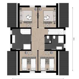 Deze 10-persoons Extra Luxe Wellness woning is ontworpen voor degene die op zoek is naar de ultieme combinatie van ruimte, luxe en ontspanning. De woning heeft een gebruiksoppervlakte van circa 147 m² en biedt meer dan genoeg ruimte voor een groot gezelschap. Op de begane grond bevindt zich een ruime hal met een separaat toilet. De woonkamer is licht en ruim, met openslaande deuren naar het terras van ongeveer 38 m², waar u heerlijk kunt ontspannen of genieten in de buitenlucht. De luxe open keuken in eilandopstelling is volledig uitgerust met moderne inbouwapparatuur en biedt alle gemakken voor een ontspannen kookervaring. Op de begane grond vindt u verder een 2-persoonsslaapkamer met een wellness badkamer, voorzien van een inloopregendouche, sunshower, dubbele wastafel met verlichte designspiegel en een saunaruimte met zowel een Finse sauna als een infrarood sauna – voor de ultieme ontspanning. Buitenom is er een van buitenaf toegankelijke berging. Op de verdieping bevinden zich vier royale 2-persoonsslaapkamers. Deze badkamer is uitgerust met een luxe bubbelbad, een inloopregendouche, sunshower en dubbele wastafel. Daarnaast is er een derde badkamer, compleet met inloopregendouche, toilet en wastafel – voor extra gemak en comfort voor iedereen. Met vijf slaapkamers en drie luxe badkamers biedt deze woning de perfecte balans tussen privacy en gezamenlijke ontspanning. De luxe voorzieningen, waaronder een was-/droogcombinatie, zorgen ervoor dat u niets tekort komt.