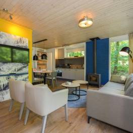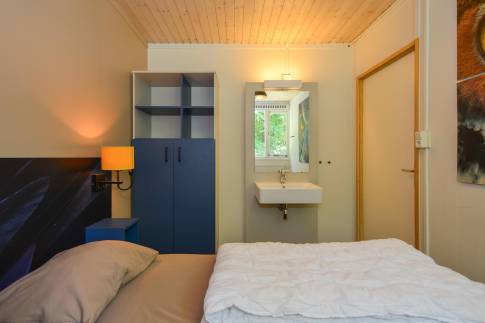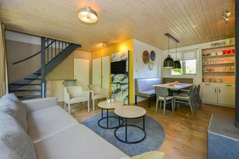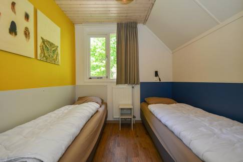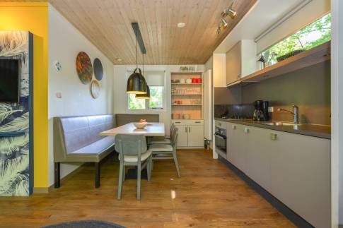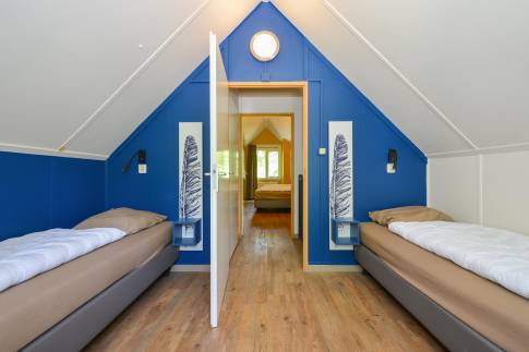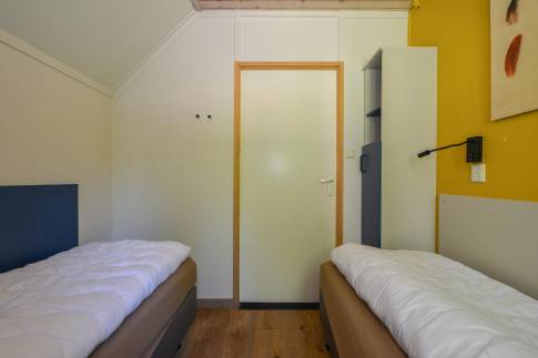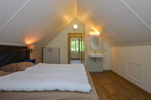 Deze 8-persoons recreatiewoning (type 8C) is gelegen aan de rand van het park. De bungalow heeft een moderne zit- en eethoek met een open keuken met diverse inbouwapparatuur, waaronder een vaatwasser, combimagnetron, koelkast met vriesvak en een Senseo koffiezetapparaat. Vanuit de woonkamer is door middel van een deur het gemeubileerde terras bereikbaar. De bungalow telt 4 slaapkamers, waarvan 2 op de begane grond, elk voorzien van twee 1-persoons boxsprings. Twee slaapkamers beschikken daarnaast over een wastafel. De badkamer is op de begane grond gelegen en is voorzien van een ligbad, douchecabine en wastafel. Het toilet is zowel op de begane grond en de verdieping separaat. Daarnaast is er een inpandige berging aanwezig.