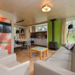Recreatiewoning 108 is gelegen nabij een speelveld en heeft onder anderen extra kinderfaciliteiten zoals kindveilige stopcontacten, een commode, kindertafel met kinderstoeltjes, bolderwagen en voldoende speelgoed.