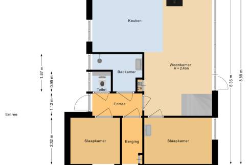 Daarnaast is er nog een inpandige berging aanwezig. Deze is via binnen en buiten bereikbaar.