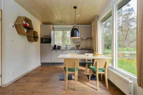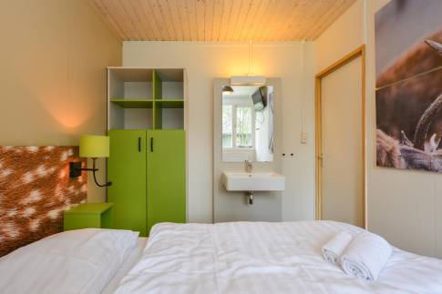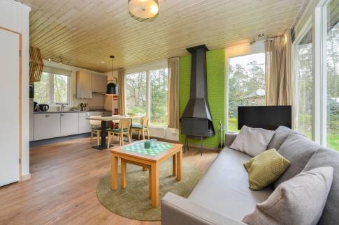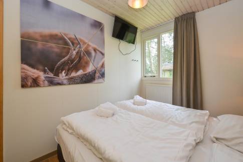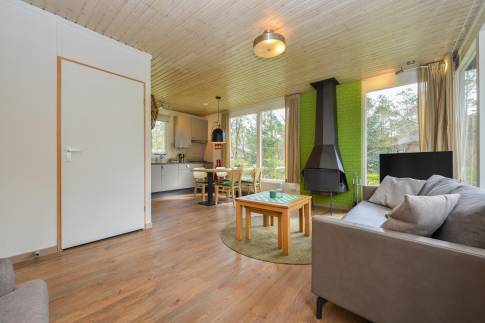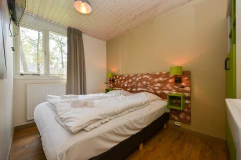 Recreatiewoning 111 (type 4CK) is een vrijstaande woning gelegen nabij een speelveld. Het betreft een kindvriendelijke woning en is voorzien van extra kinderfaciliteiten. De lichte woonkamer met zithoek en sfeervolle openhaard biedt uitzicht over de groene omgeving. Via de tuindeur heeft u toegang tot het gemeubileerde terras. De keuken met eethoek is van alle gemakken voorzien en beschikt over o.a. een vaatwasser, combi magnetron, 4-pits gaskookplaat, koelkast met vriesvak en een Senseo- en filter koffiezetapparaat. Er zijn drie slaapkamers aanwezig waarvan één beschikt over twee 1-persoons box-springs met 2-persoonssofttopper en wastafel. De tweede slaapkamer beschikt over twee 1-persoons box-springs. De derde slaapkamer is geschikt voor de allerkleinsten en is voorzien van een ledikant en commode. De badkamer beschikt over een ligbad, douche en wastafel. In de hal is er een separaat toilet aanwezig. Via de woonkamer is de inpandige berging bereikbaar.