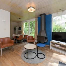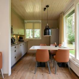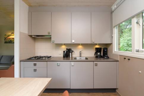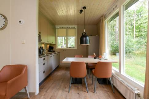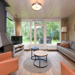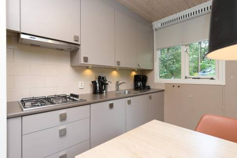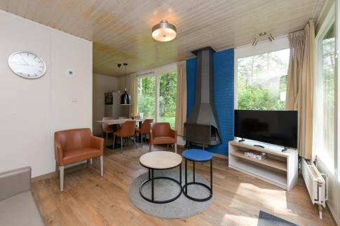 Deze geschakelde 4-persoonswoning (type 4C) ligt op een zonnige plek en centraal op het park. De moderne woonkamer met gezellige open haard geeft via de tuindeur toegang tot het gemeubileerde terras. De keuken met eethoek heeft diverse (inbouw-)apparatuur bijvoorbeeld een vaatwasser, combimagnetron, 4-pits gaskookplaat, koelkast met vriesvak en een Senseo- en filterkoffiezetapparaat. En een volledige inventaris voor 4 personen.