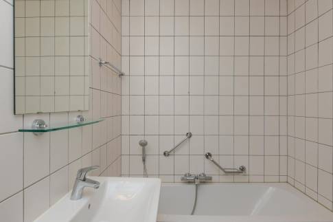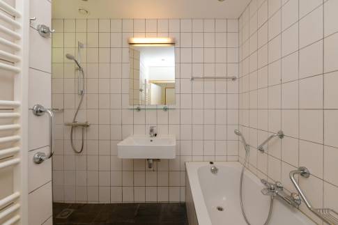 Er zijn in deze woning twee slaapkamers, waarvan er één met twee 1-persoons boxspringbed met 2-persoonssofttopper en wastafel. In de tweede slaapkamer vindt u twee 1-persoons boxspringsbedden. De badkamer heeft een bad, een aparte douche en een wastafel. Het toilet vindt u in een separate ruimte.