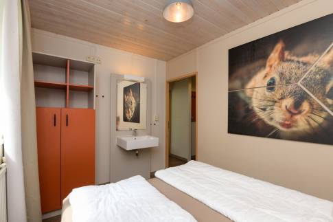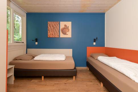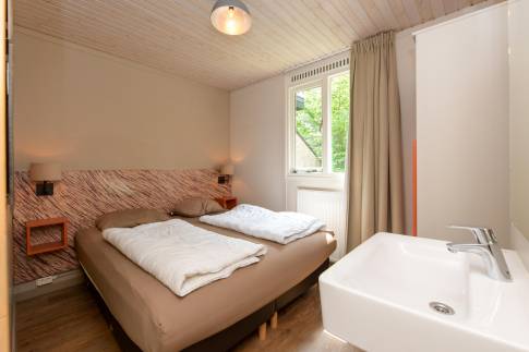 Er zijn twee slaapkamers, waarvan er één twee 1-persoons boxsprings met 2-persoonssofttopper en wastafel heeft. De tweede slaapkamer beschikt over twee 1-persoons boxspringsbedden.