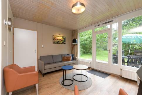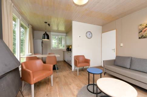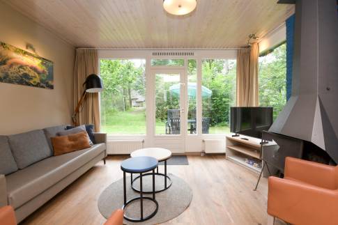 Deze geschakelde 4-persoonswoning ligt op een centrale plek op het park. En toch heeft u hier direct het gevoel dat u hier heerlijk rustig van de natuur kunt genieten. Vanuit de gezellige woonkamer met sfeervolle open haard heeft u via de tuindeur toegang tot het gemeubileerde terras.