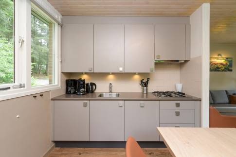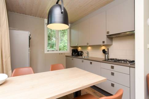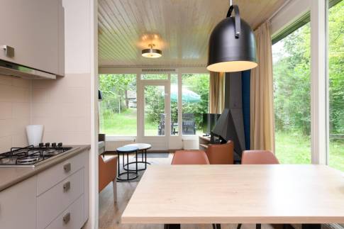 De keuken met eethoek is van alle gemakken voorzien en heeft bijvoorbeeld een vaatwasser, combimagnetron, 4-pits gaskookplaat, koelkast met vriesvak en een Senseo- en filterkoffiezetapparaat.