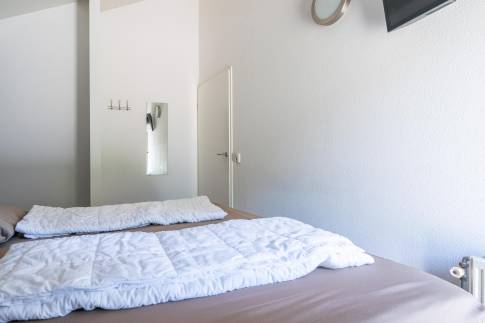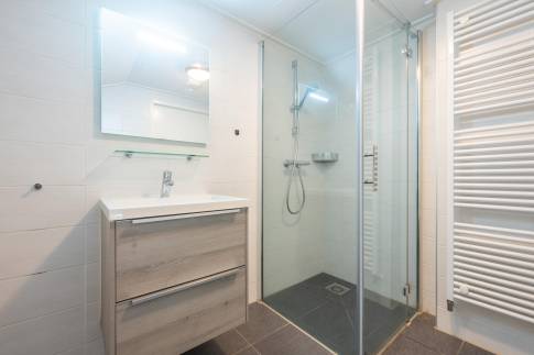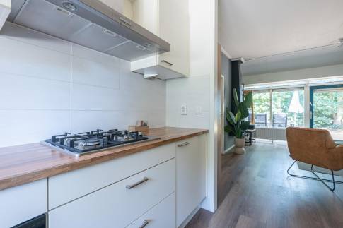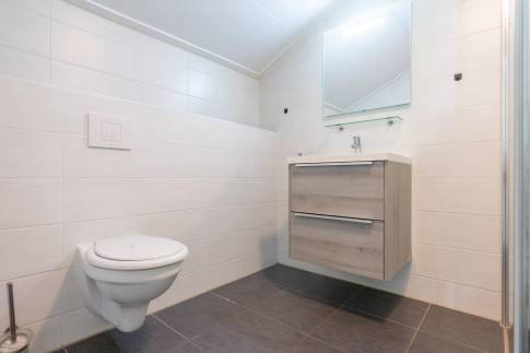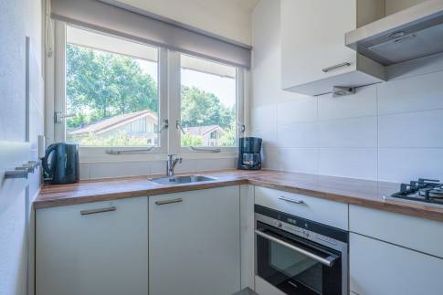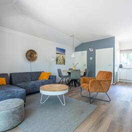 De open keuken is volledig uitgerust en beschikt onder andere over een vaatwasser, combimagnetron en een Senseo-koffiezetapparaat – alles wat u nodig heeft voor een aangenaam verblijf. De woning telt twee royale slaapkamers, beide voorzien van twee eenpersoons boxspringbedden. De badkamer is ingericht met een inloopdouche, toilet en wastafel. Daarnaast is er een praktische bergruimte aanwezig, bereikbaar via de buitenzijde van de woning.